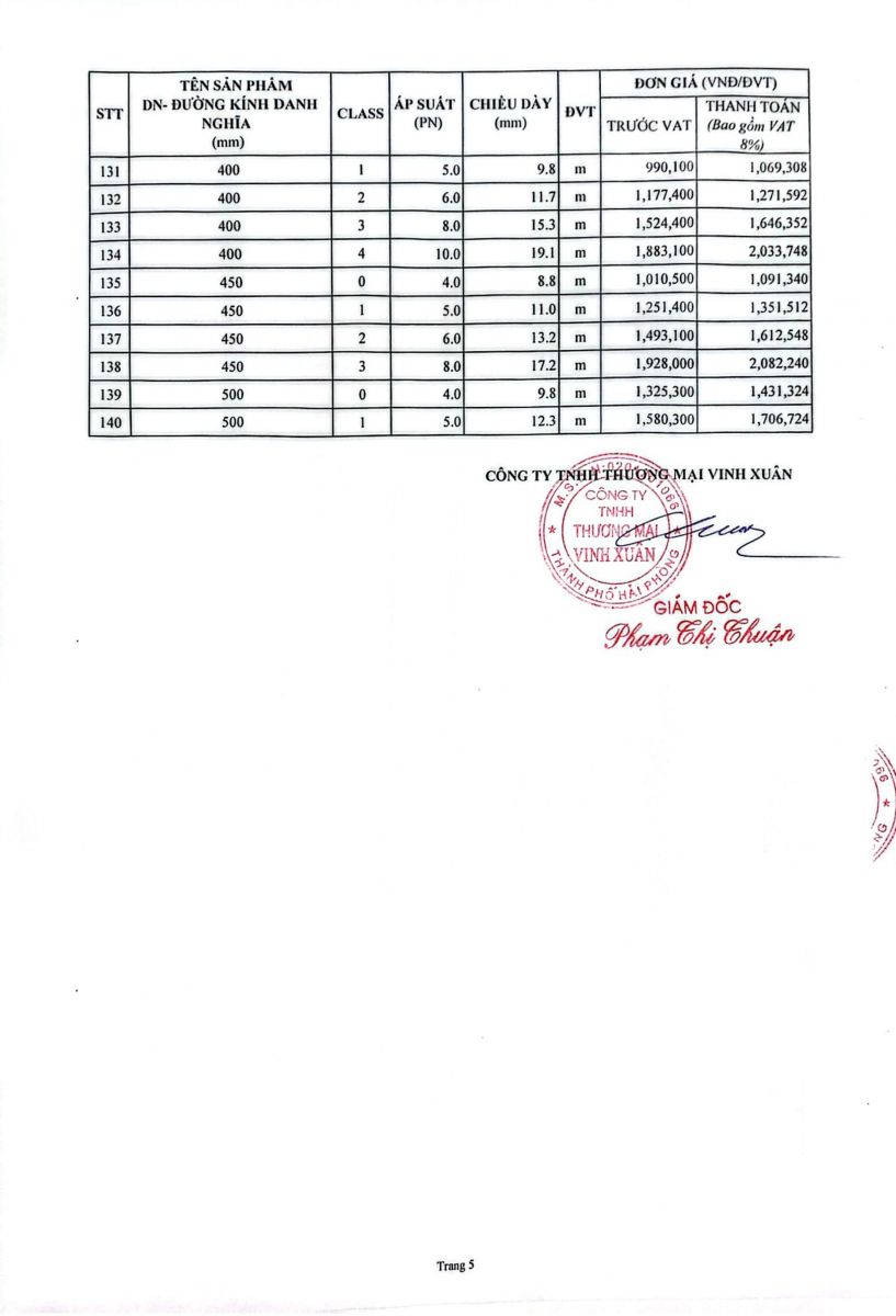 BÁO GIÁ ỐNG NHỰA UPVC THUẬN PHÁT