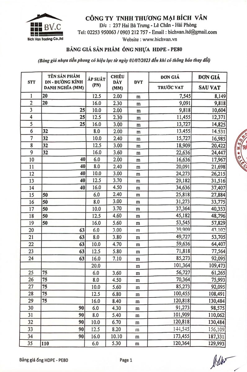 Công Ty TNHH TM Bích Vân xin gửi đến Quý khách hàng bảng báo giá ống nhựa uPVC, HDPE Thuận Phát, Tiền Phong chất lượng cao với giá thành rẻ nhất thị trường, cùng chính sách chiết khấu cao nhất dành cho các công trình, dự án tại Thái Bình.