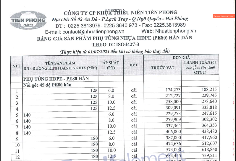 BANG GIA PHU TUNG HAN DAN HDPE TIEN PHONG