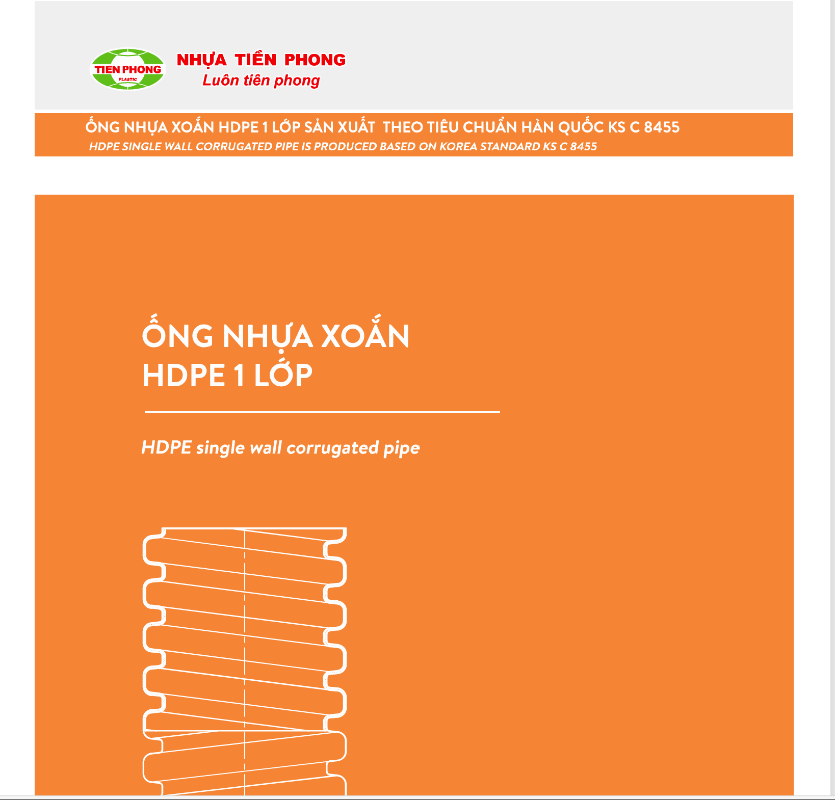 Ống xoắn HDPE luồn dây điện 1 lớp được sản xuất theo tiêu chuẩn Hàn Quốc KS C 8455 là sản phẩm có tính chuyên dụng cao và rất đa dạng trong việc bảo vệ cáp điện, cáp thông tin trong các khu công nghiệp, các công trình cầu đường, bến cảng, sân bay, khu đô thị...
